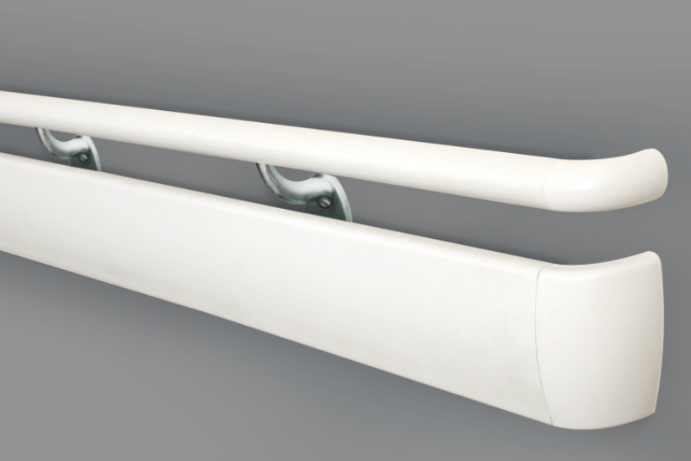 醫用防撞扶手是由PVC面板與鋁合金底襯加底座組合而成,它具有具有抗菌,防火,耐磨,護墻,防滑功效。用于醫院,養老院等公共場所。幫助病殘體弱者支撐行走,還能起到保護墻體的作用。